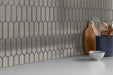 Picket™ is inspired by the simplistic angles of a picket fence in a shimmering glass mosaic pattern. With warm tones, the collection exudes a contemporary approach to wall design.